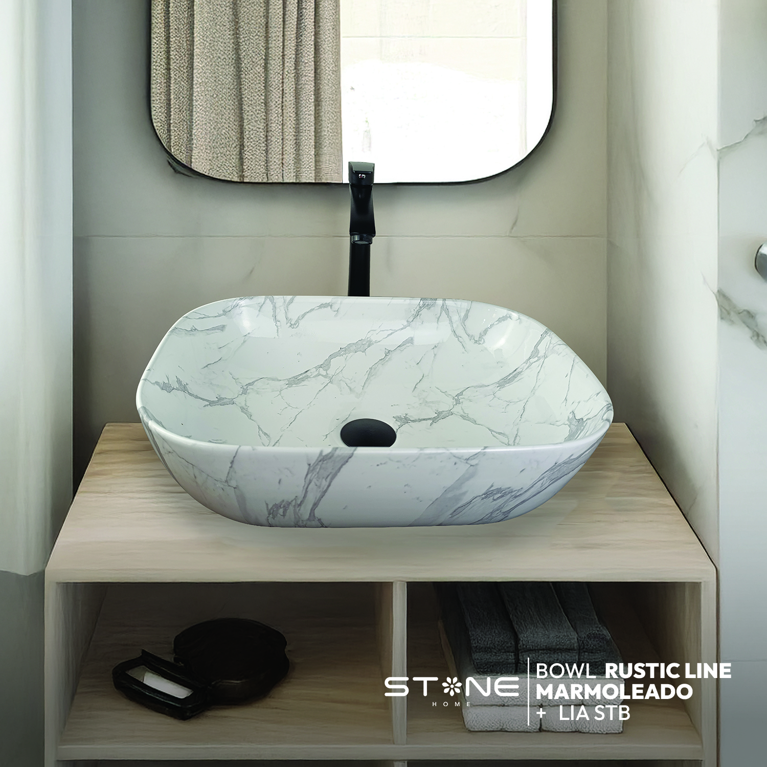 COMBO BOWL RUSTIC LINE MARMOLEADO + LLAVE P/BOWL LIA STB + DESAGUE POP UP GRANDE NEGRO S/REBOSE P/BOWL CUERPO 8 CM COLA 18 CM