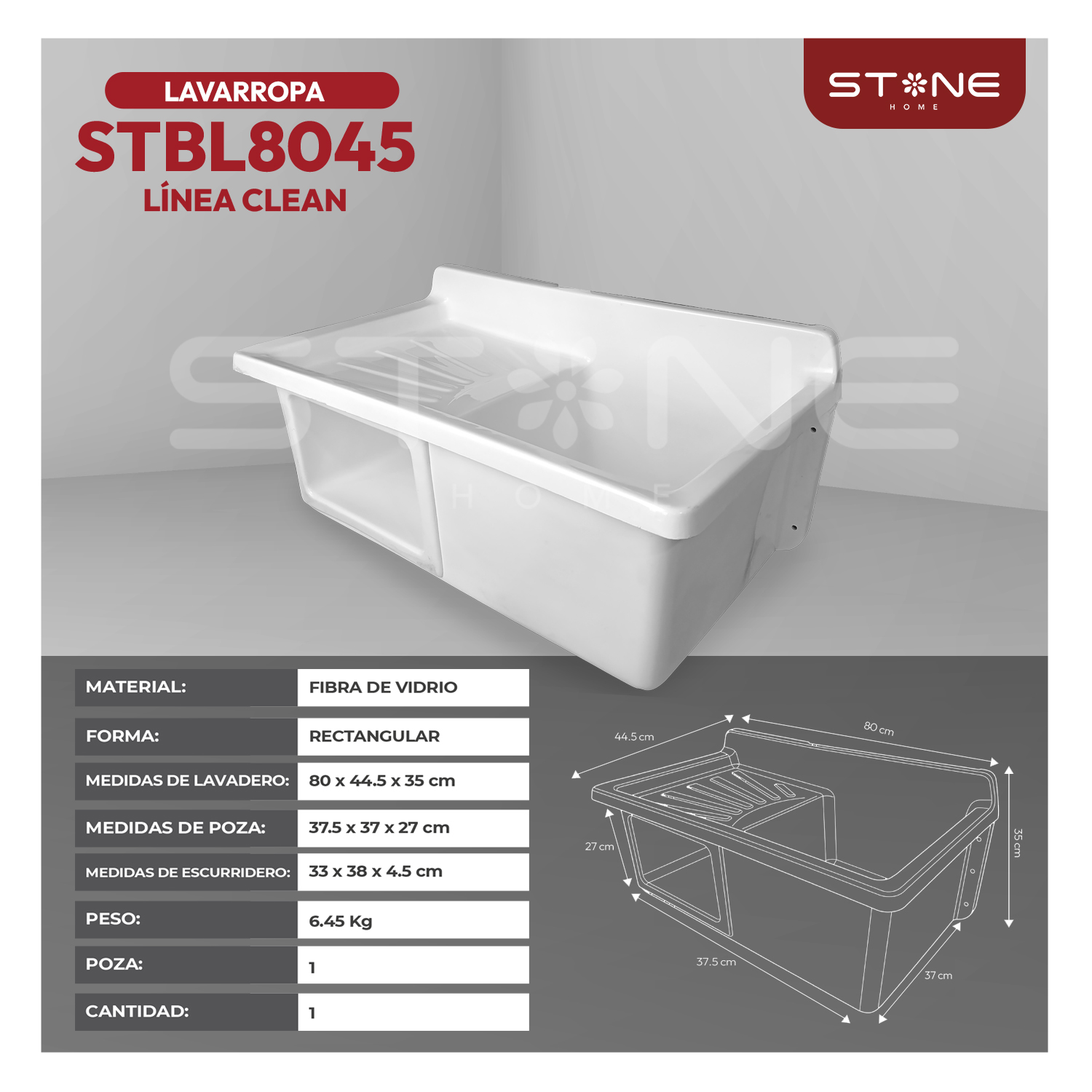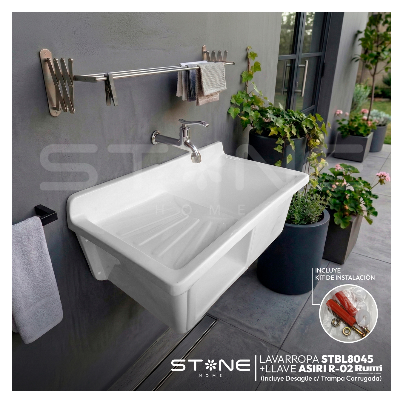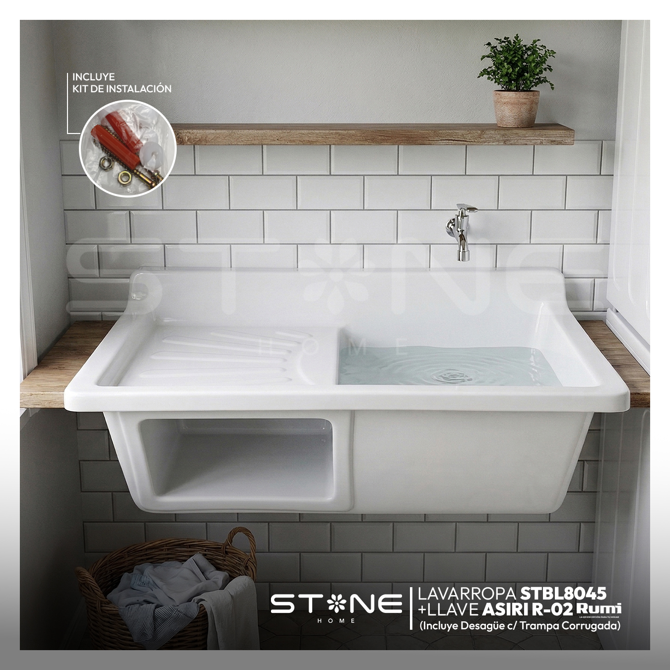 COMBO LAVARROPAS DE FIBRA DE VIDRIO STBL8045 + LLAVE ASIRI R-02 RUMI + DESAGÜE C/TRAMPA CORRUGADA *KIT DE INSTALACIÓN STONE