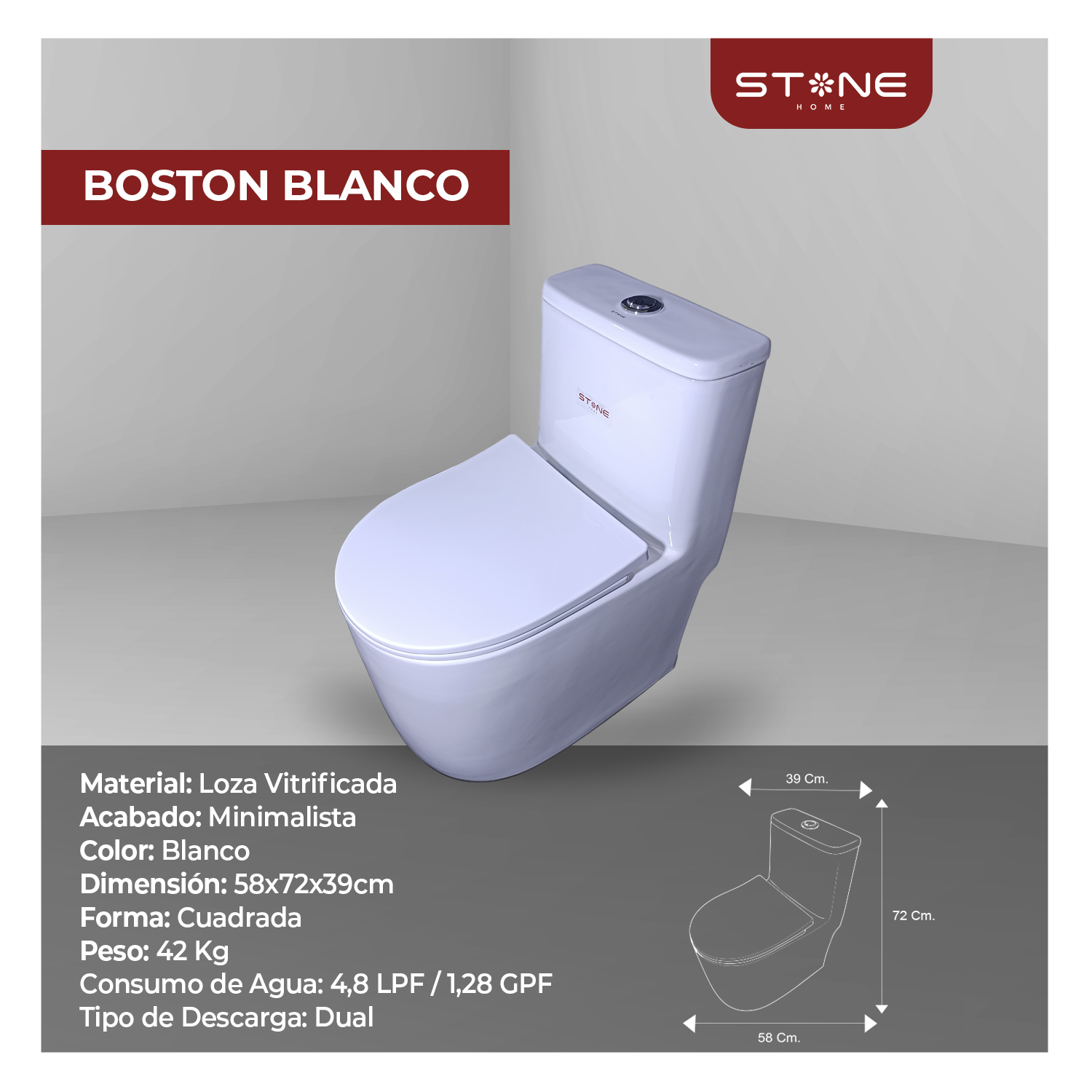INODORO ONE PIECE MINIMALISTA BOSTON BLANCO STONE
