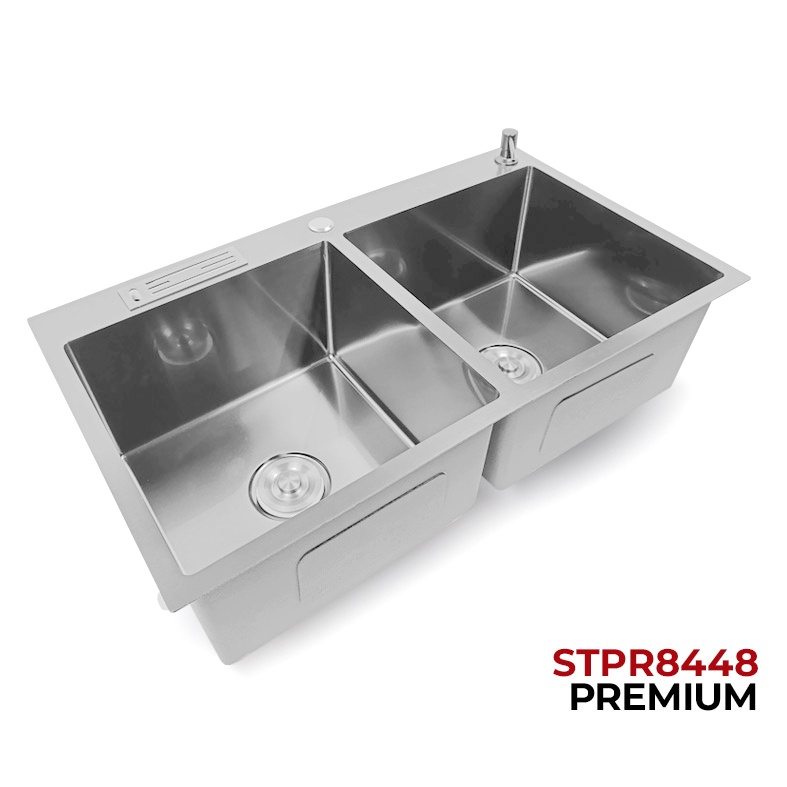 LAVADERO DE ACERO PREMIUM STPR8448 CON PORTACUCHILLO Y DISPENSADOR DE JABON SATINADO STONE