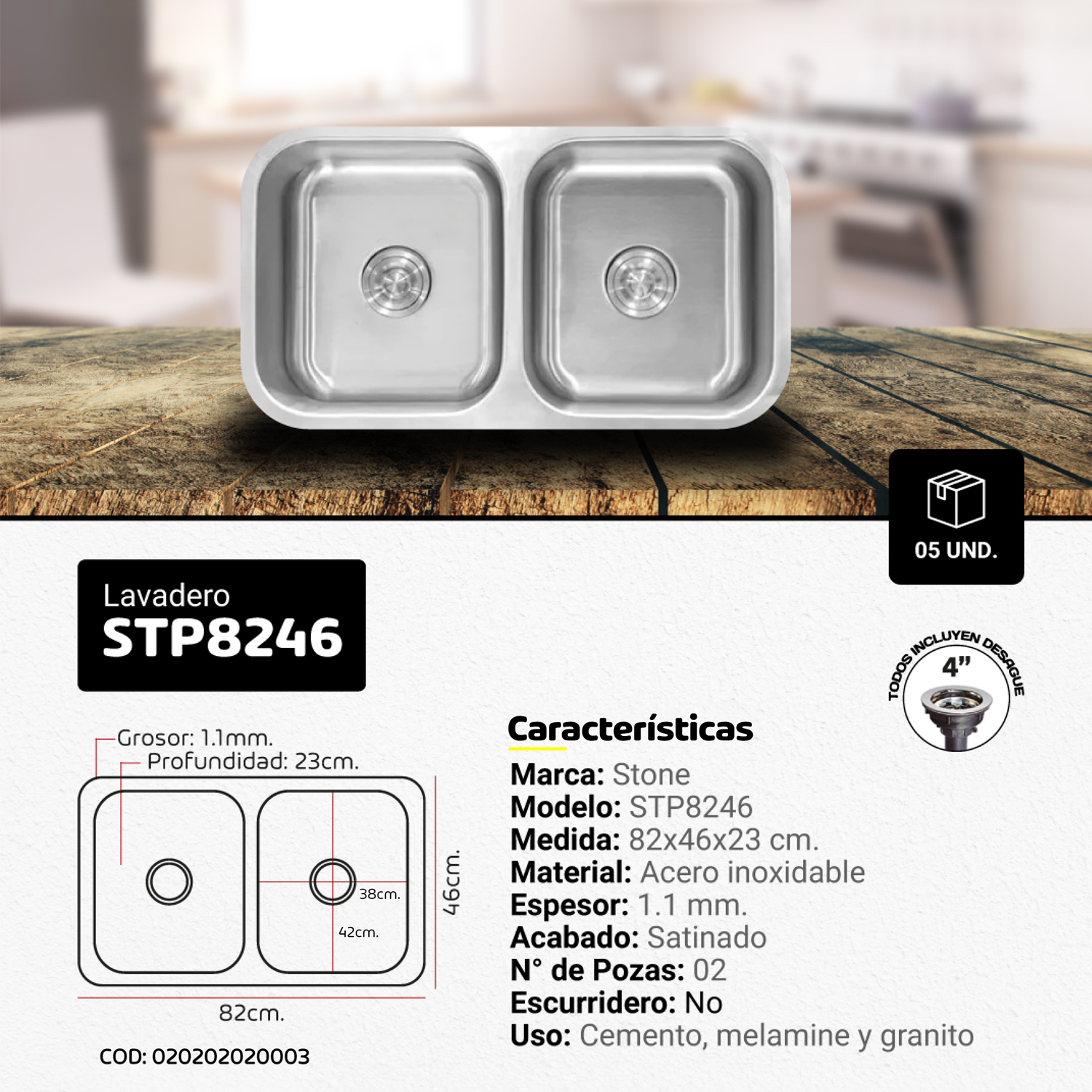 - USO: Cemento Melamina y Granito