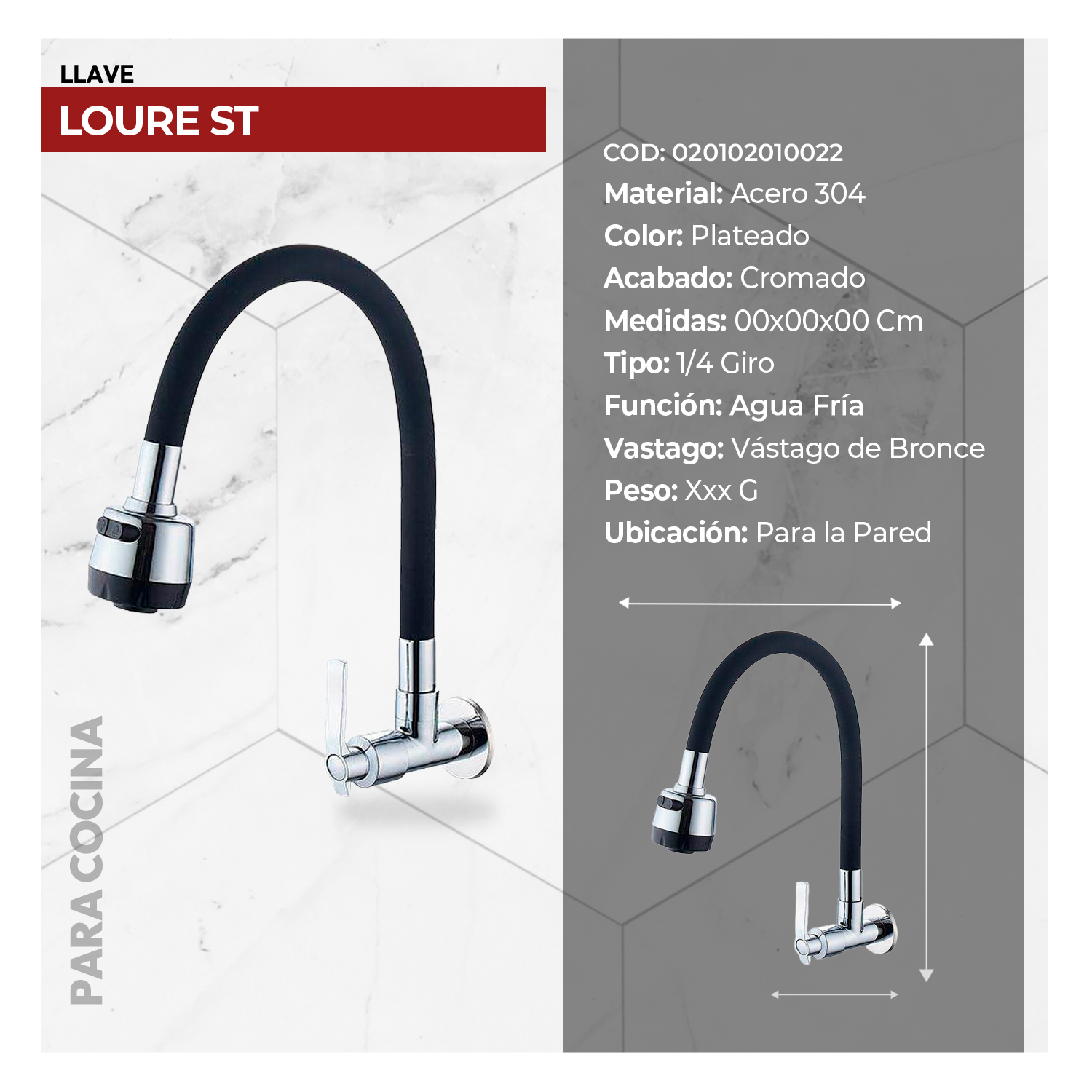 Sé el primero en valorar “LLAVE DE COCINA A LA PARED LOURE ST-01 CROMADO STONE” Cancelar la respuesta