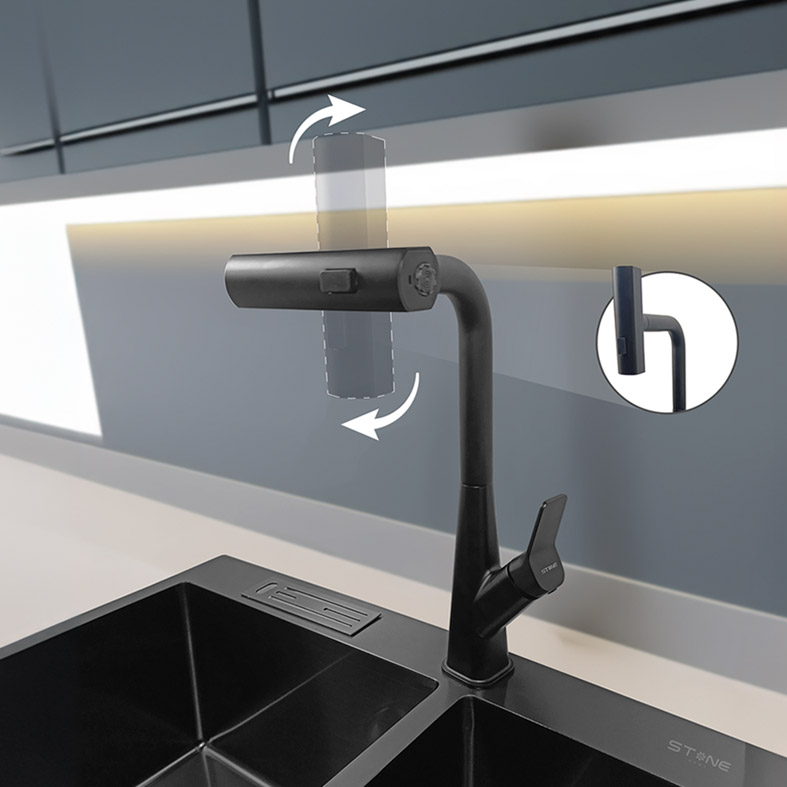 MEZCLADORA MONOCOMANDO P/COCINA AL MUEBLE GAEL STB-01 BLACK STONE
