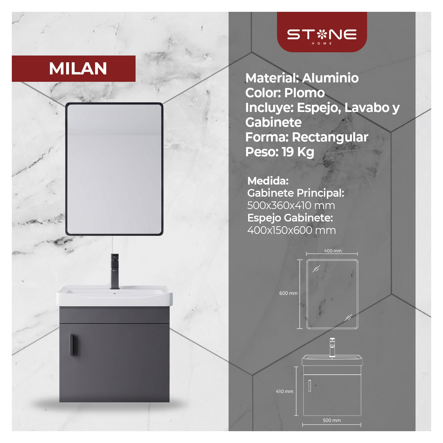 VANITORIO MINIMALISTA MILAN PLOMO STONE